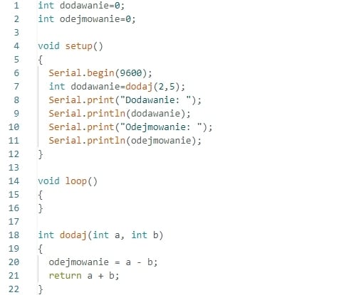 zmiennej np.: int wynik = doda(2,5);. Po takim poleceniu