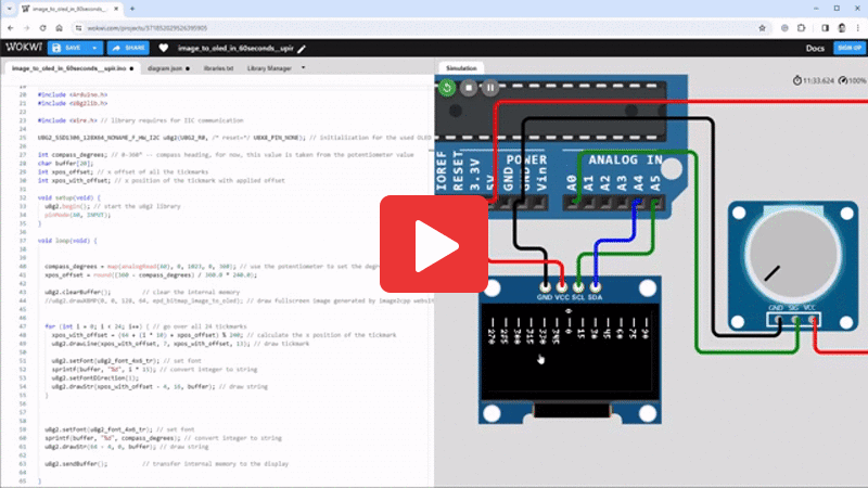 sposób zasymulować pracę potencjometru oraz wyświetlacza OLED online na