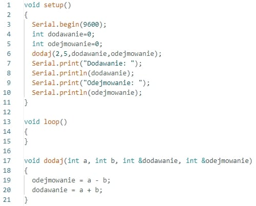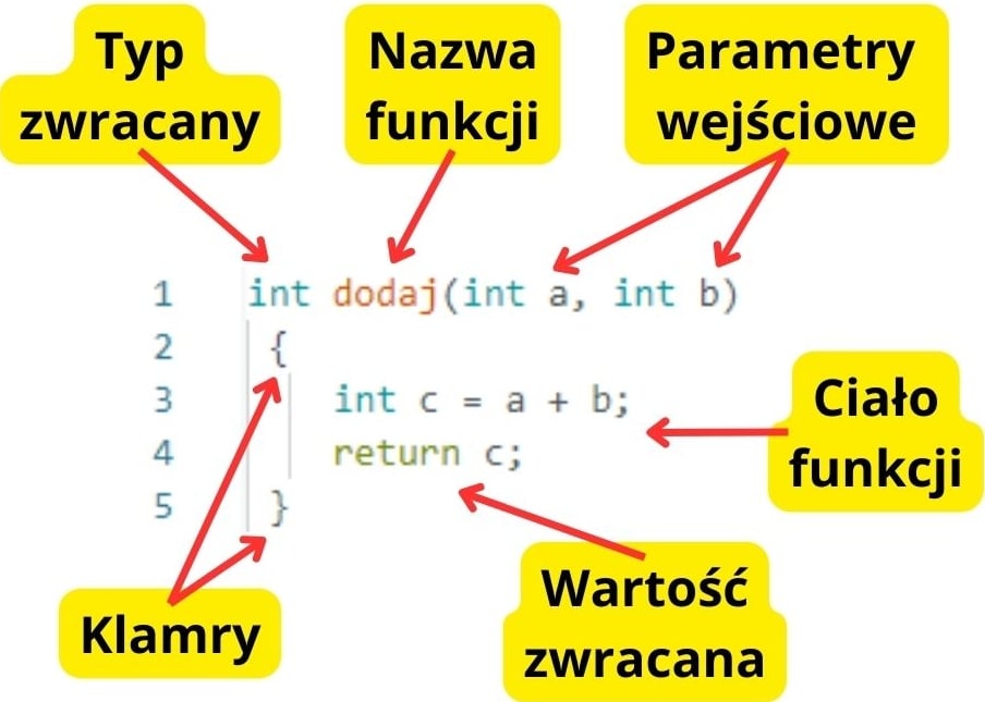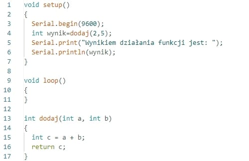 przypadku funkcja ma dodawać dwie liczby dlatego nazwaliśmy