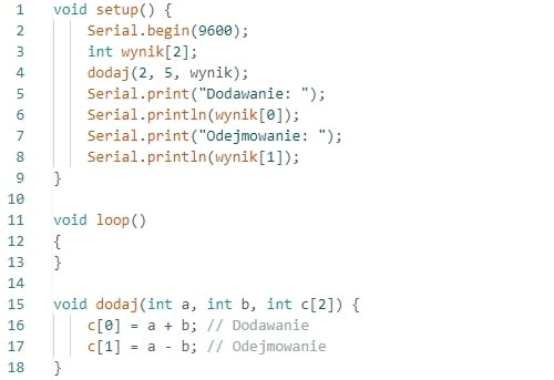 jej typ: W Arduino IDE, funkcja zwraca wartość po poleceniu