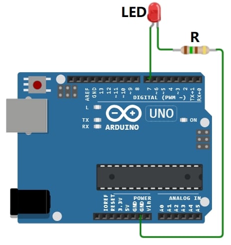 pinie wyjściowym Arduino UNO, należy użyć rezystora o wartości nie mniejszej